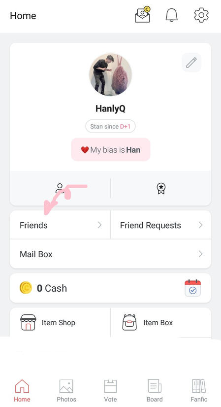 En 'Inicio' te apareceran 3 apartados que son 'Amigos 'Solicitud de amigos' y 'Buzón'