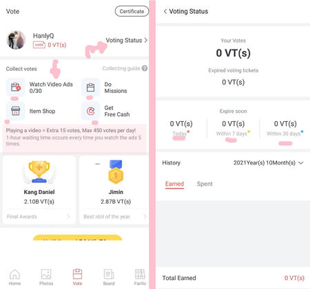 En 'Voting Status' podrás ver cuantos Vts tienes, cuantos expiran hoy, esta semana o dentro de un mes, además de que también puedes ver tu historial de uso de ellos
